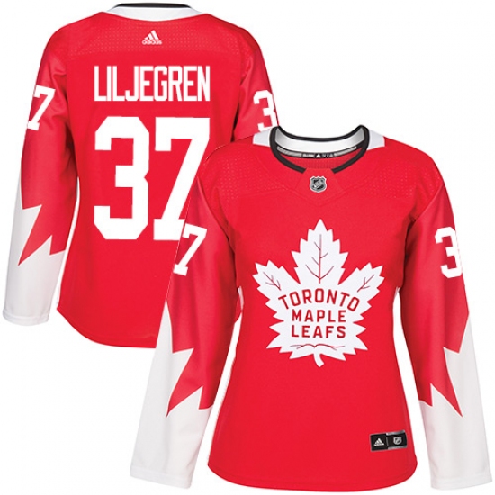 Women's Adidas Toronto Maple Leafs #37 Timothy Liljegren Authentic Red Alternate NHL Jersey
