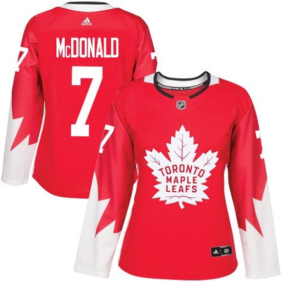 Women's Adidas Toronto Maple Leafs #7 Lanny McDonald Authentic Red Alternate NHL Jersey