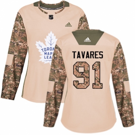 >Women's Adidas Toronto Maple Leafs #91 John Tavares Authentic Camo Veterans Day Practice NHL Jersey
