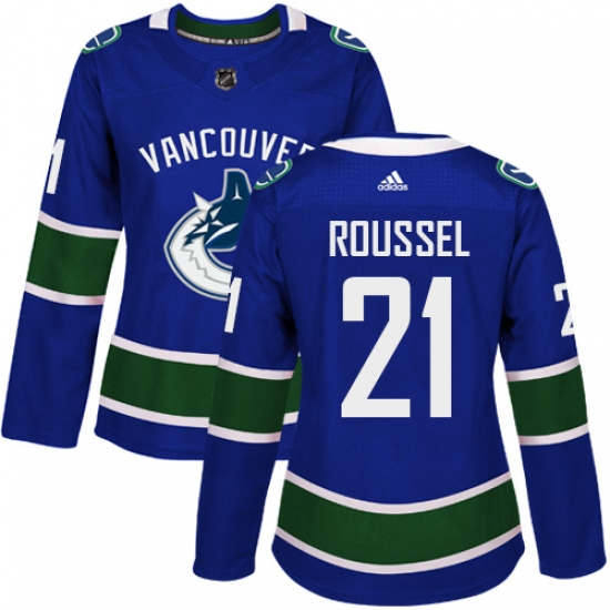 >Women's Adidas Vancouver Canucks #21 Antoine Roussel Authentic Blue Home NHL Jersey