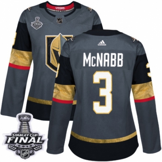 Women's Adidas Vegas Golden Knights #3 Brayden McNabb Authentic Gray Home 2018 Stanley Cup Final NHL Jersey