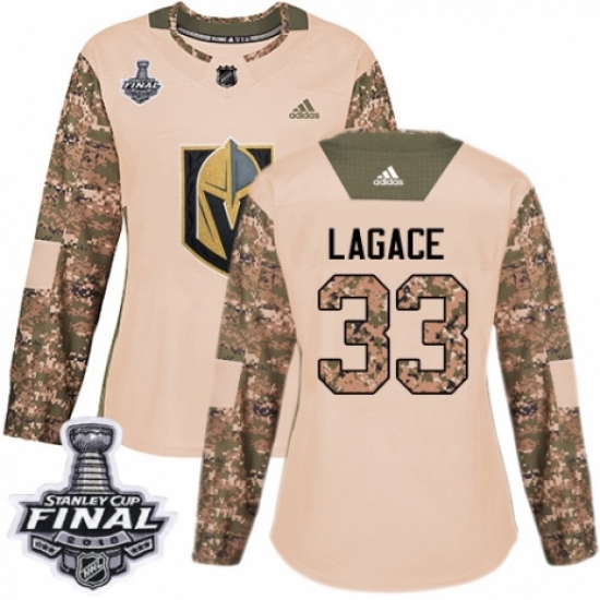>Women's Adidas Vegas Golden Knights #33 Maxime Lagace Authentic Camo Veterans Day Practice 2018 Stanley Cup Final NHL Jersey