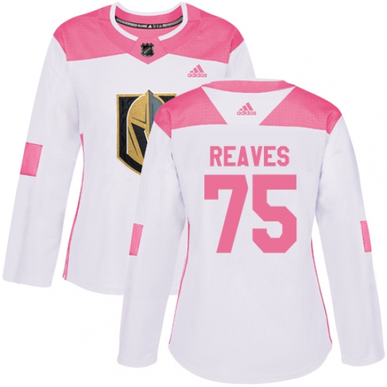 Women's Adidas Vegas Golden Knights #75 Ryan Reaves Authentic White Pink Fashion NHL Jersey