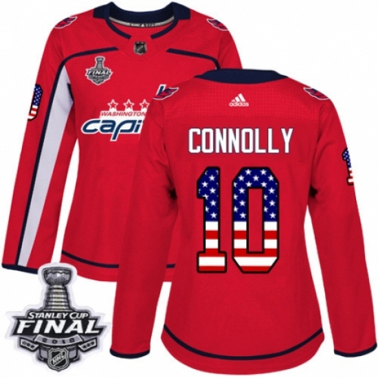 >Women's Adidas Washington Capitals #10 Brett Connolly Authentic Red USA Flag Fashion 2018 Stanley Cup Final NHL Jersey