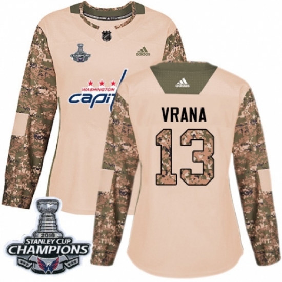 Women's Adidas Washington Capitals #13 Jakub Vrana Authentic Camo Veterans Day Practice 2018 Stanley Cup Final Champions NHL Jersey