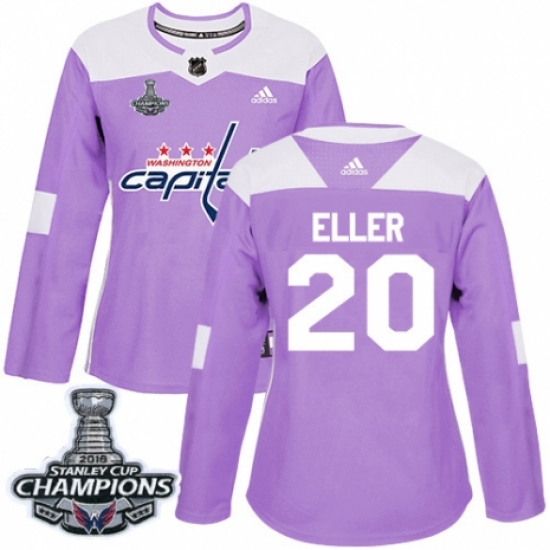 Women's Adidas Washington Capitals #20 Lars Eller Authentic Purple Fights Cancer Practice 2018 Stanley Cup Final Champions NHL Jersey