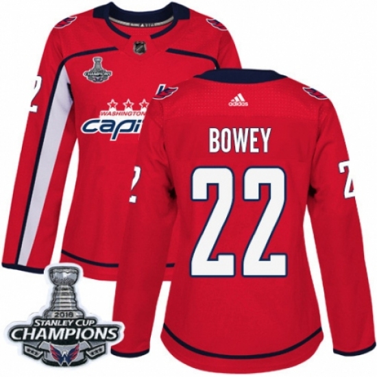 Women's Adidas Washington Capitals #22 Madison Bowey Authentic Red Home 2018 Stanley Cup Final Champions NHL Jersey