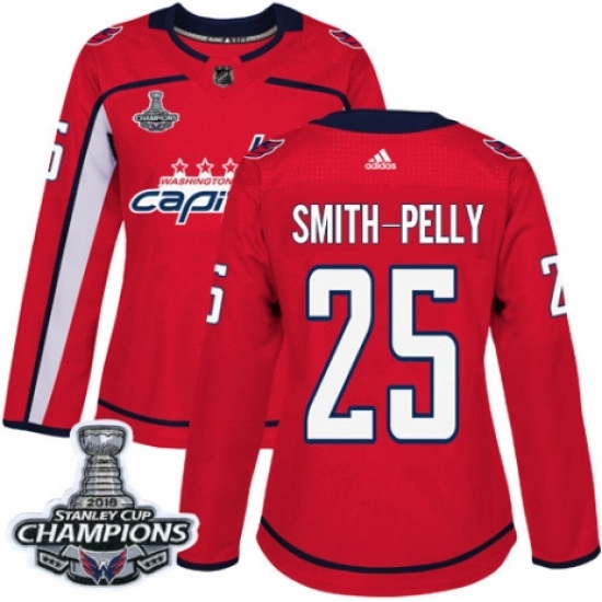 Women's Adidas Washington Capitals #25 Devante Smith-Pelly Authentic Red Home 2018 Stanley Cup Final Champions NHL Jersey