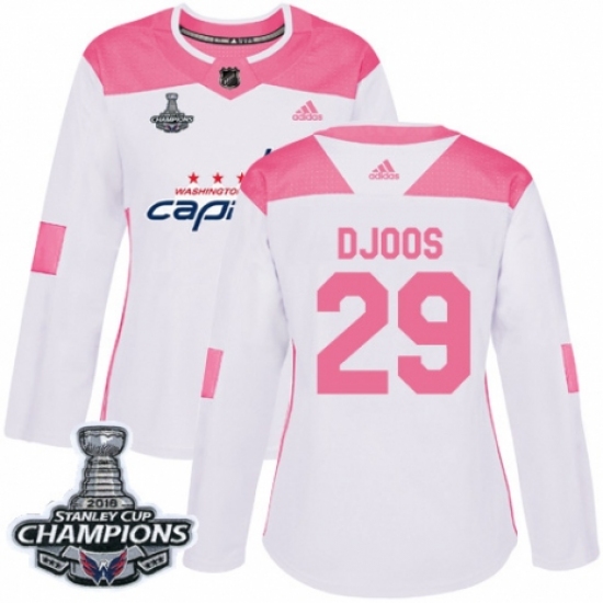 Women's Adidas Washington Capitals #29 Christian Djoos Authentic White Pink Fashion 2018 Stanley Cup Final Champions NHL Jersey