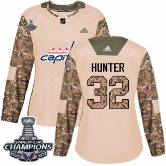 Women's Adidas Washington Capitals #32 Dale Hunter Authentic Camo Veterans Day Practice 2018 Stanley Cup Final Champions NHL Jersey