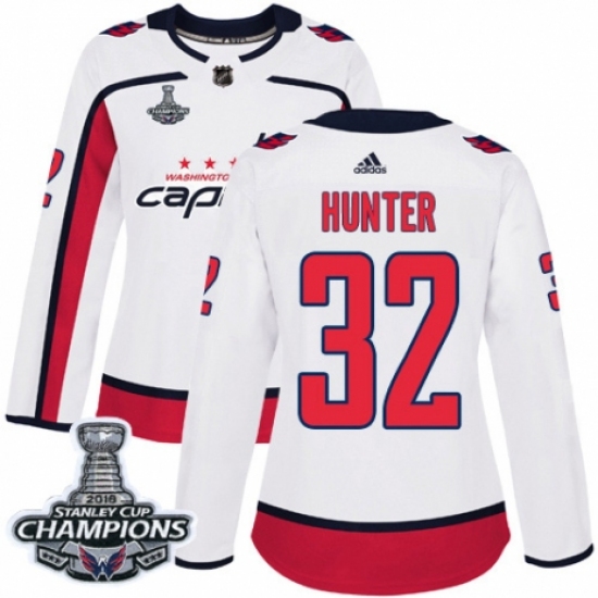 Women's Adidas Washington Capitals #32 Dale Hunter Authentic White Away 2018 Stanley Cup Final Champions NHL Jersey