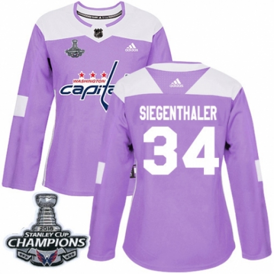 Women's Adidas Washington Capitals #34 Jonas Siegenthaler Authentic Purple Fights Cancer Practice 2018 Stanley Cup Final Champions NHL Jersey