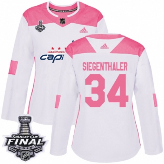 Women's Adidas Washington Capitals #34 Jonas Siegenthaler Authentic White Pink Fashion 2018 Stanley Cup Final Champions NHL Jersey