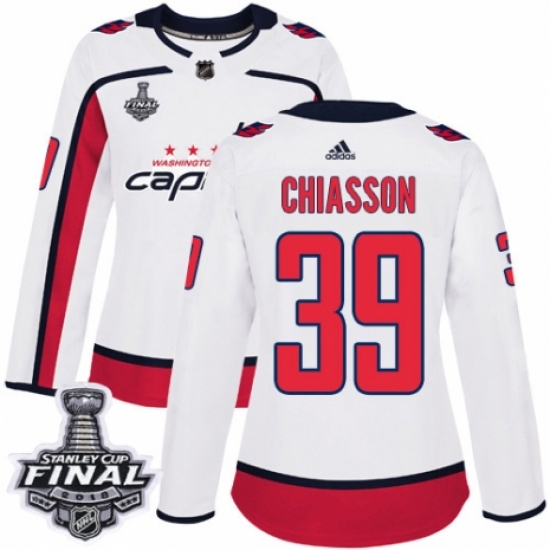 Women's Adidas Washington Capitals #39 Alex Chiasson Authentic White Away 2018 Stanley Cup Final NHL Jersey