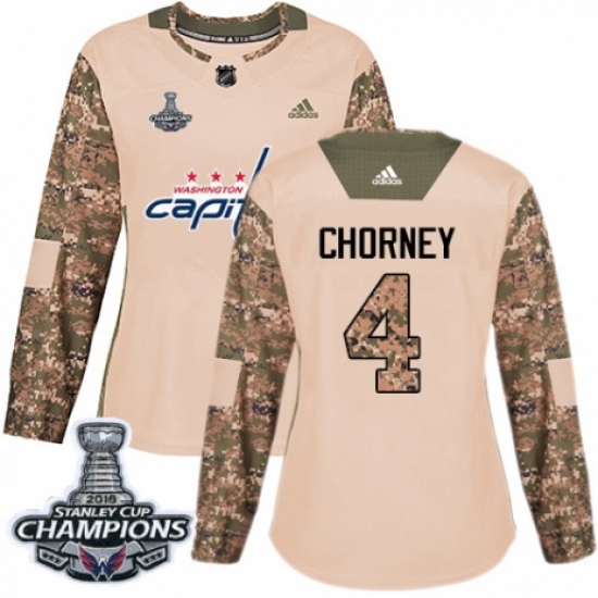 Women's Adidas Washington Capitals #4 Taylor Chorney Authentic Camo Veterans Day Practice 2018 Stanley Cup Final Champions NHL Jersey