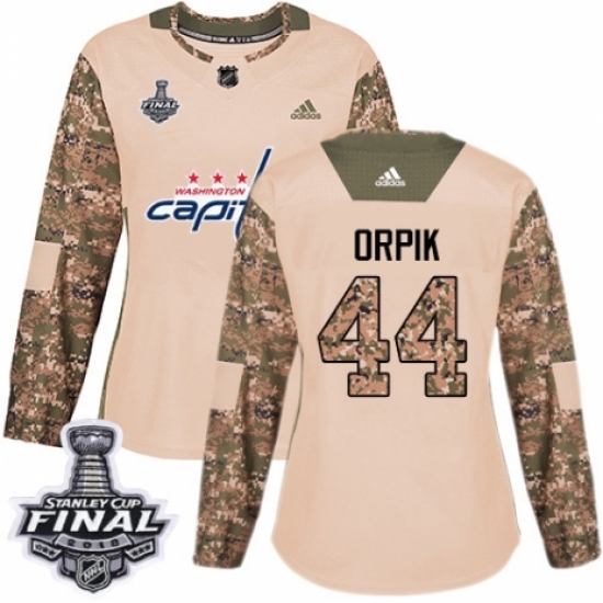 Women's Adidas Washington Capitals #44 Brooks Orpik Authentic Camo Veterans Day Practice 2018 Stanley Cup Final NHL Jersey