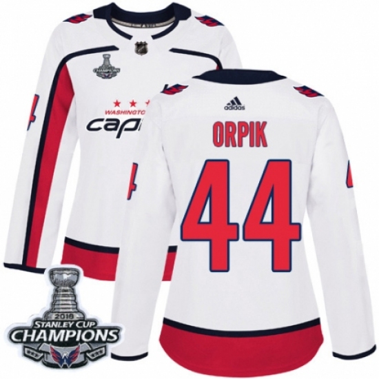 >Women's Adidas Washington Capitals #44 Brooks Orpik Authentic White Away 2018 Stanley Cup Final Champions NHL Jersey