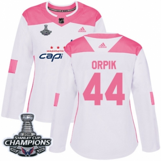 Women's Adidas Washington Capitals #44 Brooks Orpik Authentic White Pink Fashion 2018 Stanley Cup Final Champions NHL Jersey