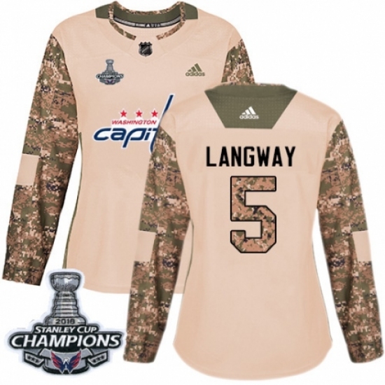 Women's Adidas Washington Capitals #5 Rod Langway Authentic Camo Veterans Day Practice 2018 Stanley Cup Final Champions NHL Jersey