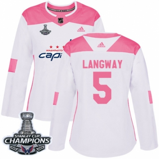 Women's Adidas Washington Capitals #5 Rod Langway Authentic White Pink Fashion 2018 Stanley Cup Final Champions NHL Jersey