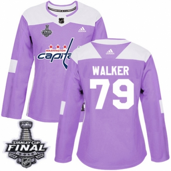 >Women's Adidas Washington Capitals #79 Nathan Walker Authentic Purple Fights Cancer Practice 2018 Stanley Cup Final NHL Jersey