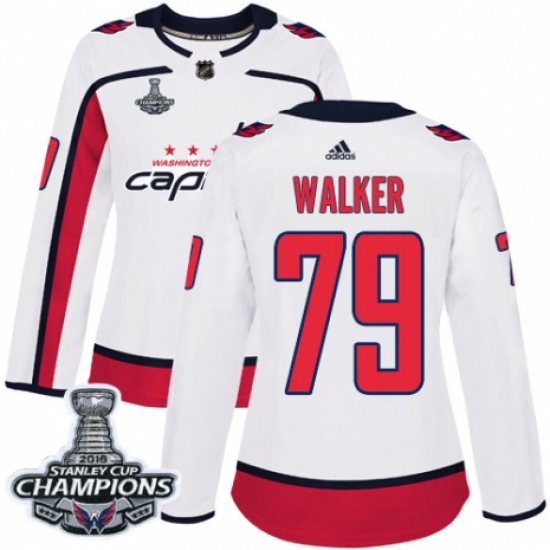 Women's Adidas Washington Capitals #79 Nathan Walker Authentic White Away 2018 Stanley Cup Final Champions NHL Jersey