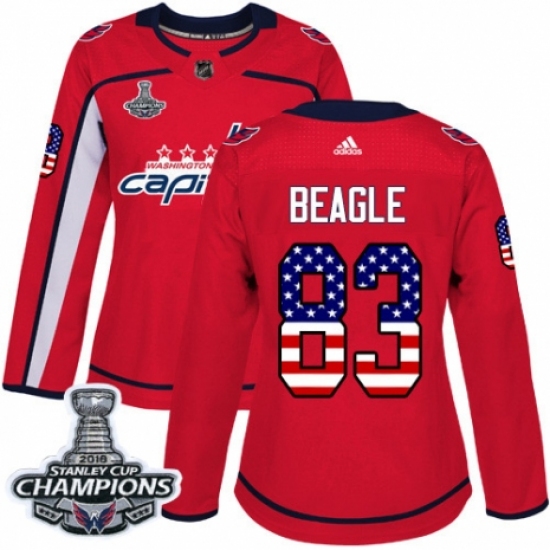 Women's Adidas Washington Capitals #83 Jay Beagle Authentic Red USA Flag Fashion 2018 Stanley Cup Final Champions NHL Jersey