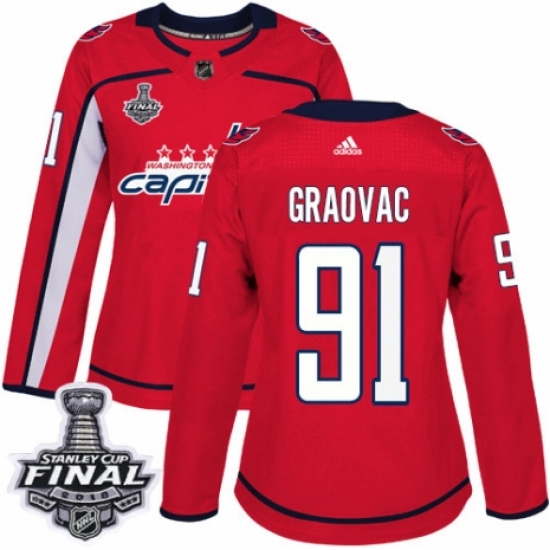 Women's Adidas Washington Capitals #91 Tyler Graovac Authentic Red Home 2018 Stanley Cup Final NHL Jersey