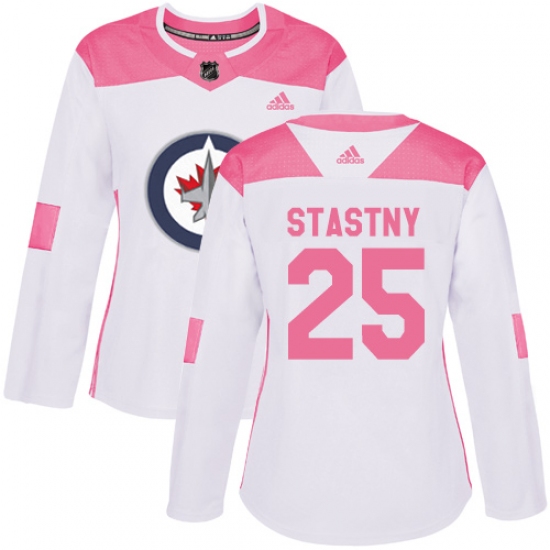 Women's Adidas Winnipeg Jets #25 Paul Stastny Authentic White Pink Fashion NHL Jersey