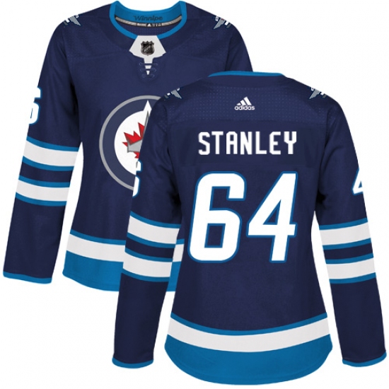 Home>NHL>Winnipeg Jets>Logan Stanley>Women's Adidas Winnipeg Jets #64 Logan Stanley Premier Navy Blue Home NHL Jersey