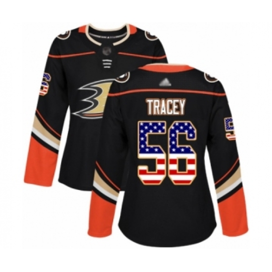 Women's Anaheim Ducks #56 Brayden Tracey Authentic Black USA Flag Fashion Hockey Jersey