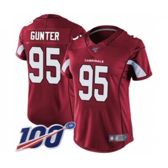 >Women's Arizona Cardinals #95 Rodney Gunter Red Team Color Vapor Untouchable Limited Player 100th Season Football Jersey