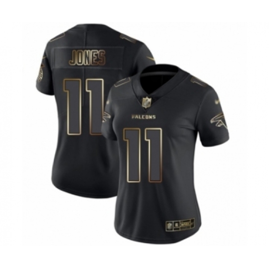 >Women's Atlanta Falcons #11 Julio Jones Black Gold Vapor Untouchable Limited Player 100th Season Football Jersey