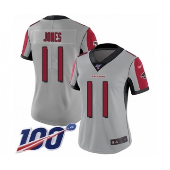 Women's Atlanta Falcons #11 Julio Jones Limited Silver Inverted Legend 100th Season Football Jersey