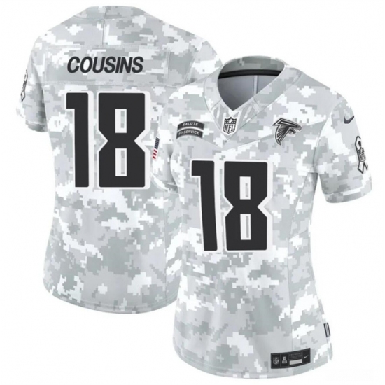 >Women's Atlanta Falcons #18 Kirk Cousins 2024 F.U.S.E Arctic Camo Salute To Service Limited Stitched Football Jersey(Run Small)