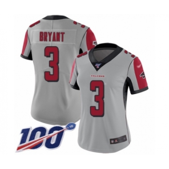 >Women's Atlanta Falcons #3 Matt Bryant Limited Silver Inverted Legend 100th Season Football Jersey