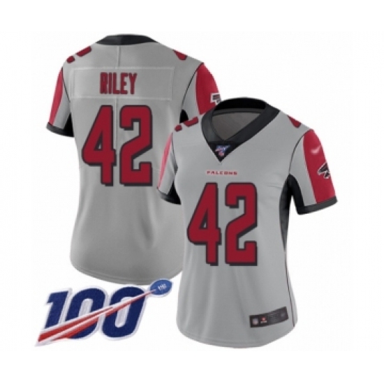 >Women's Atlanta Falcons #42 Duke Riley Limited Silver Inverted Legend 100th Season Football Jersey
