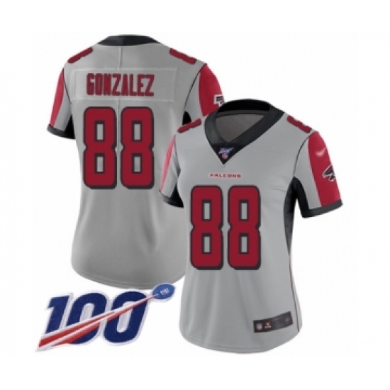 >Women's Atlanta Falcons #88 Tony Gonzalez Limited Silver Inverted Legend 100th Season Football Jersey