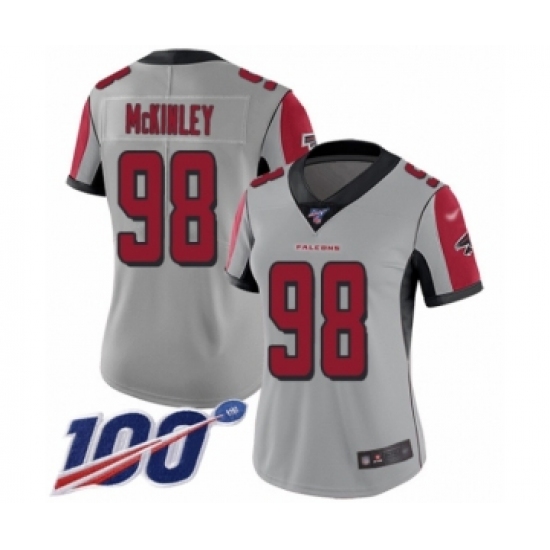 >Women's Atlanta Falcons #98 Takkarist McKinley Limited Silver Inverted Legend 100th Season Football Jersey