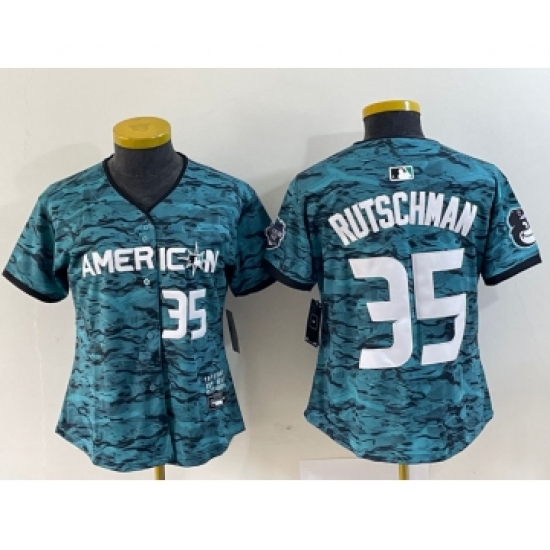>Women's Baltimore Orioles #35 Adley Rutschman Teal 2023 All Star Cool Base Stitched Baseball Jersey