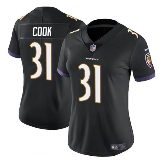 Women's Baltimore Ravens #31 Dalvin Cook Black Football Stitched Jersey