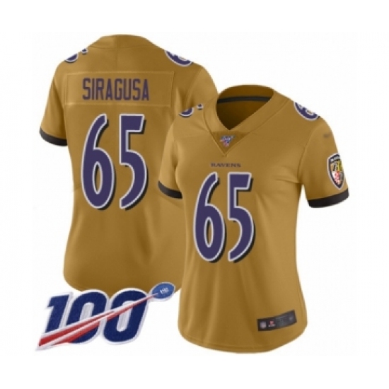 Women's Baltimore Ravens #65 Nico Siragusa Limited Gold Inverted Legend 100th Season Football Jersey