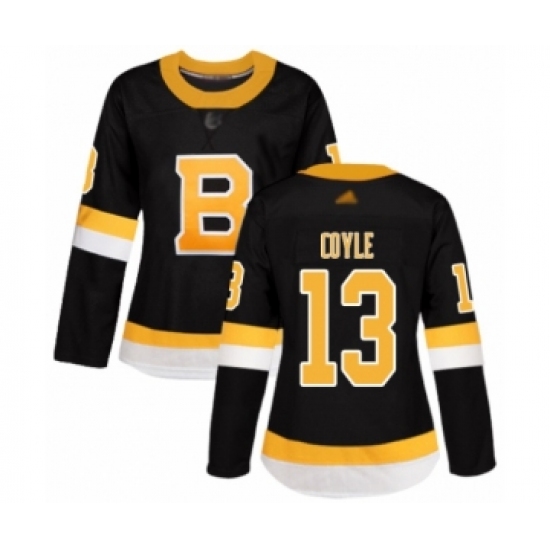 >Women's Boston Bruins #13 Charlie Coyle Authentic Black Alternate Hockey Jersey