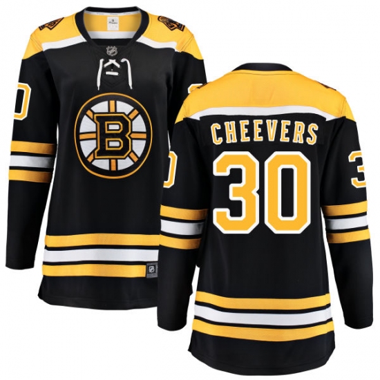 Women's Boston Bruins #30 Gerry Cheevers Authentic Black Home Fanatics Branded Breakaway NHL Jersey
