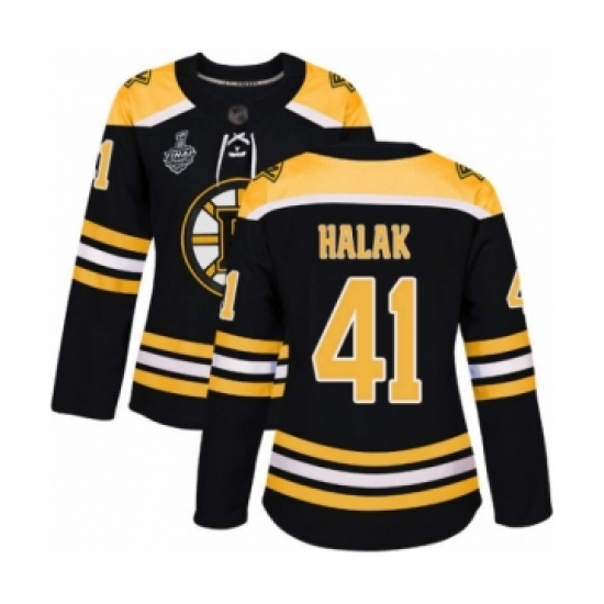 Women's Boston Bruins #41 Jaroslav Halak Authentic Black Home 2019 Stanley Cup Final Bound Hockey Jersey