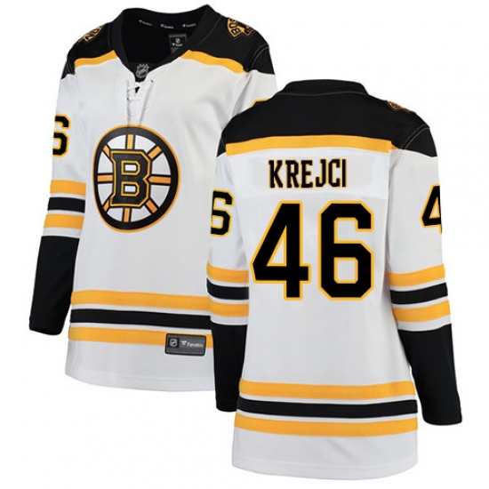 Home>NHL>Boston Bruins>David Krejci>Women's Boston Bruins #46 David Krejci Authentic White Away Fanatics Branded Breakaway NHL Jersey