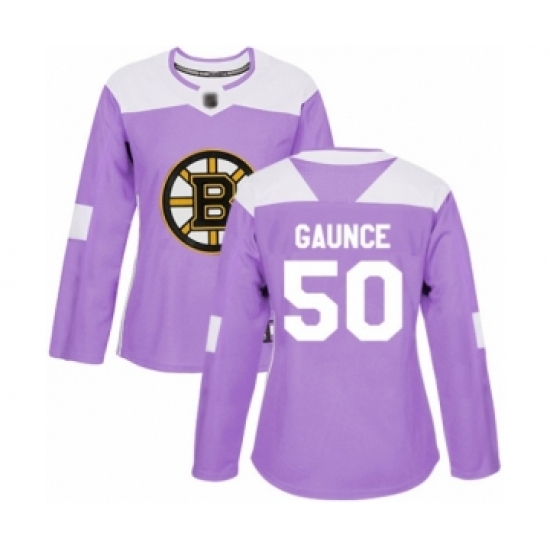 >Women's Boston Bruins #50 Brendan Gaunce Authentic Purple Fights Cancer Practice Hockey Jersey