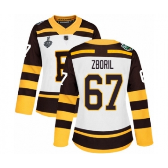 >Women's Boston Bruins #67 Jakub Zboril Authentic White Winter Classic 2019 Stanley Cup Final Bound Hockey Jersey