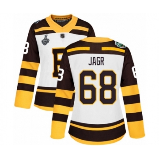 >Women's Boston Bruins #68 Jaromir Jagr Authentic White Winter Classic 2019 Stanley Cup Final Bound Hockey Jersey