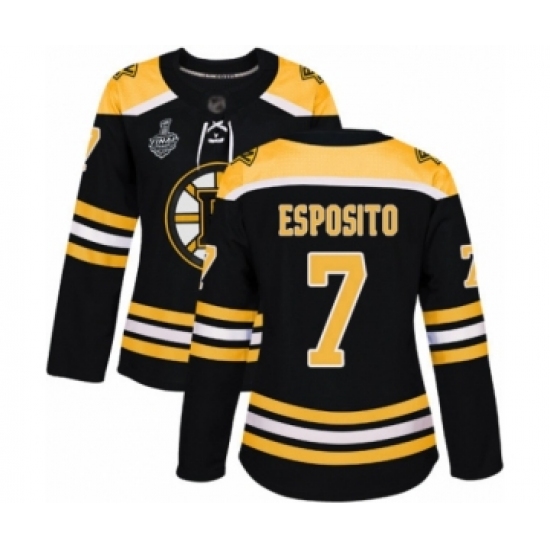 >Women's Boston Bruins #7 Phil Esposito Authentic Black Home 2019 Stanley Cup Final Bound Hockey Jersey